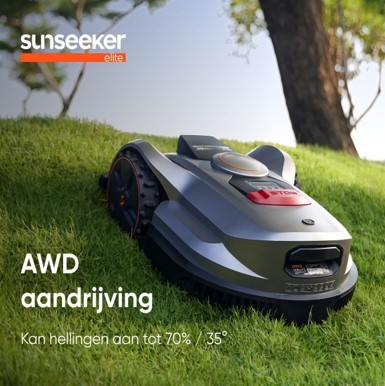 De Sunseeker Elite is de perfecte keuze voor wie zoekt naar een krachtige en duurzame robotmaaier. Met slimme sensoren, Al Wheel Drive en obstakeldetectie is deze maaier perfect voor complexe tuinen en ruwer terrein met veel hellingen, bochten en objecten.